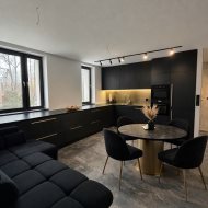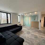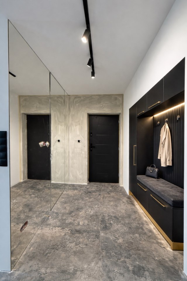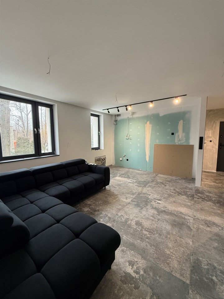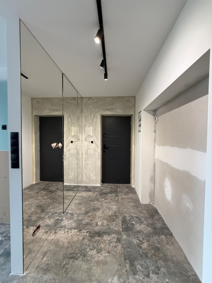 Nowoczesne oświetlenie LED, ogrzewanie podłogowe gazowe w całym mieszkaniu, drzwi ukryte do sufitu, drzwi akustyczne, designerskie detale i efektowne lustra od podłogi do sufitu. Mieszkanie wymaga jedynie wykończenia podłóg w dwóch pokojach, zabudowy kuchni i umeblowania — idealna baza do aranżacji pod własny gust.
